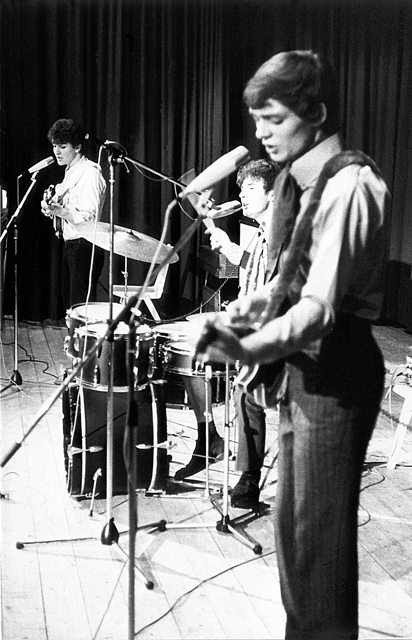 Welcher Drummer kannte nicht das Problem, daß bei jedem Tritt auf die Fußmaschine, welche die Bass-Drums zum dumpfen Beat brachte, das Ding mit den aufgesetzten Toms peu à peu nach vorn wanderte. Die billigste Lösung: Die Bass-Drum wurde mittels einer Schur am Sitz festgebunden. |